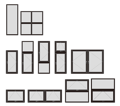 【4】推射窗的多重選擇,提供設計師活潑與 最佳的規劃。 【5】推射窗系列產品可與90度、135度轉角 料搭配成活潑的八角窗;或是景觀窗。 |