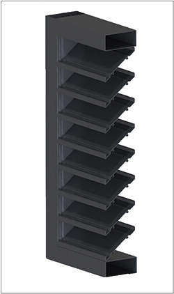 雨水滯留排水導溝能有效且迅速排除雨水。 高效率空氣流通量並產生緩和氣流。 安靜無聲,降低噪音特性。 大片型百葉,多色澤塗裝,新式設計美觀。 可加裝防蟲網,有效阻隔蟲類入侵。 外牆遮陽、通風、招牌、吊掛多元化考量。